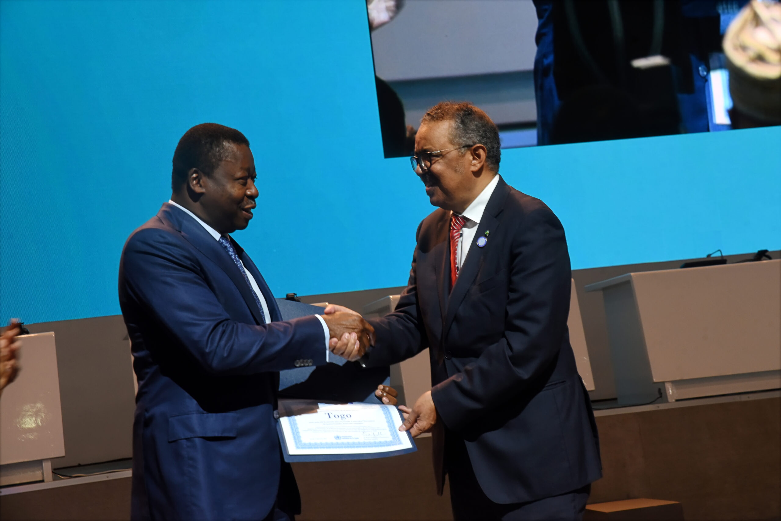 La cérémonie a été aussi marquée par la remise de la reconnaissance au Chef de l’Etat Faure Gnassingbé pour les efforts du Togo dans l’élimination de 4 maladies tropicales négligées, à savoir dracunculose, filariose lymphatique, trypanosomiase humaine africaine, trachome) par l’OMS et l’Alliance mondiale pour l’élimination des maladies tropicales négligées.