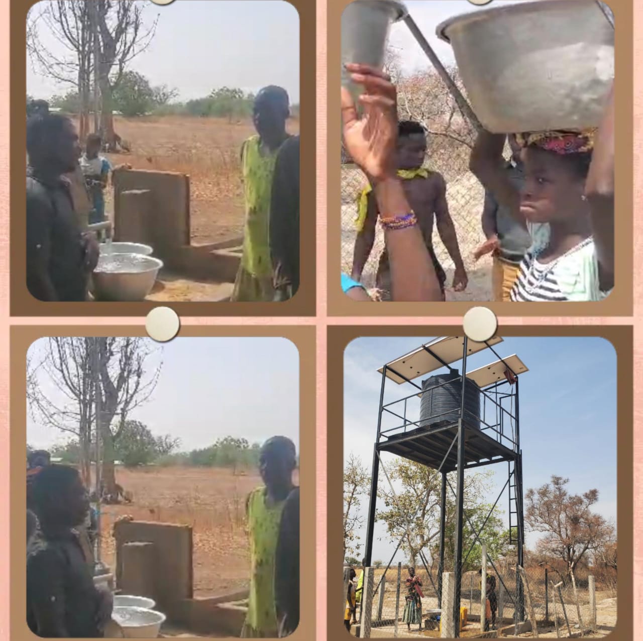 Les images qui suivent prises autour des 4 forages du village, témoignent bien de la réalité de l’approvisionnement en eau des populations.