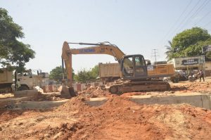 En ce qui concerne les sites des 14 km de voiries urbaines au quartier Bè, les travaux évoluent normalement. Sur le Boulevard Houphouët Boigny, l’entreprise SOROUBAT a commencé à poser les caniveaux préfabriqués en U mais les réseaux de la SPEAU ne sont pas encore déplacés.