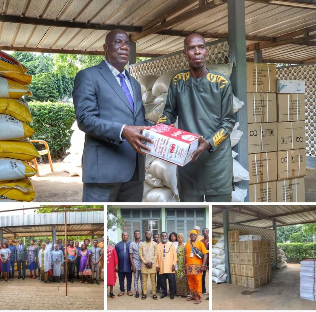 Le Secrétaire Général par intérim du District Autonome du Grand Lomé (DAGL), Tagba Ataféyinam Tchalim, représentant madame le Gouverneur, lors de la cérémonie tenue le 29 août 2024 sur l’esplanade de l’Hôtel du District a remis un don en vivres et en non-vivres à 14 orphelinats installés sur le territoire du Grand Lomé.