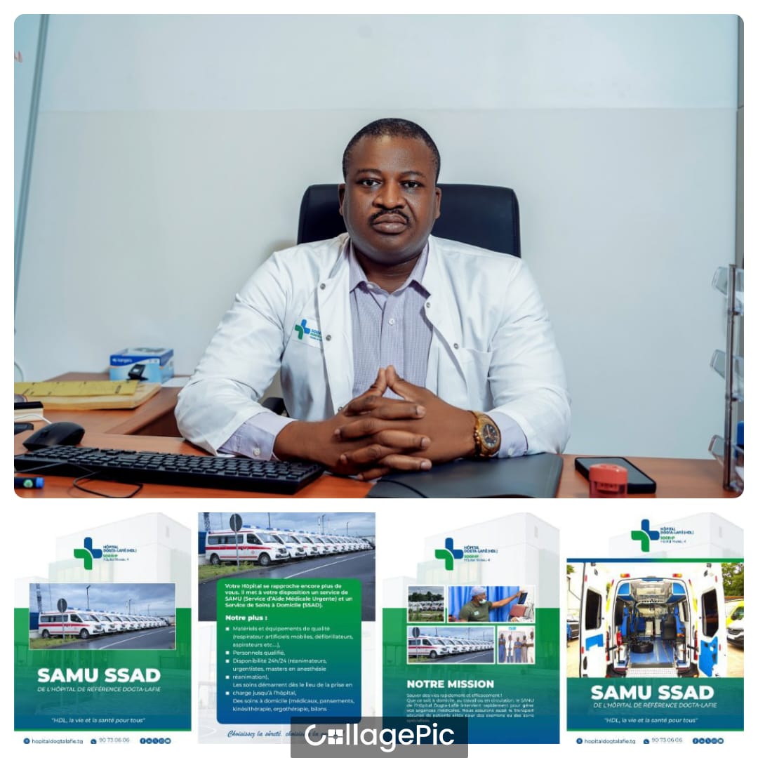 L’hôpital DOGTA-LAFIÈ révolutionne les soins médicaux grâce à une initiative novatrice lancée par son Conseil d’administration et son Directeur Médical, et mise en œuvre par le Dr Poko, anesthésiste-réanimateur et médecin lieutenant-colonel des FAT. Ce projet phare met en avant deux services essentiels : un Service de Soins à Domicile (SSAD) et un Service d’Aide Médicale Urgente (SAMU), illustrant l’engagement de l’hôpital pour une médecine de pointe et accessible à tous.
