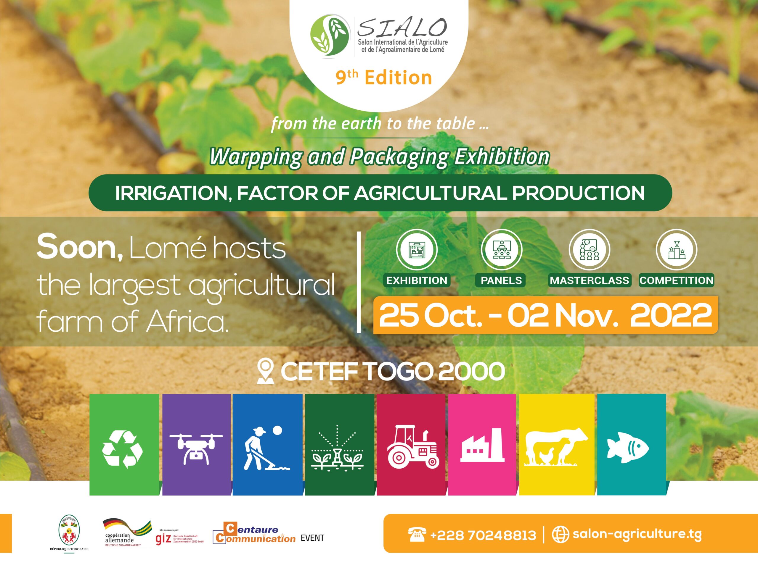 Carrefour des produits, services, technologies et innovations agricoles, SIALO 2022 sera un cadre d’échanges et de promotion entre les acteurs et les professionnels de l’Agriculture, de l’Elevage, de la Pêche, de l’Agro-industrie, de l’Agroalimentaire et de la Gastronomie du Togo et d’Afrique.