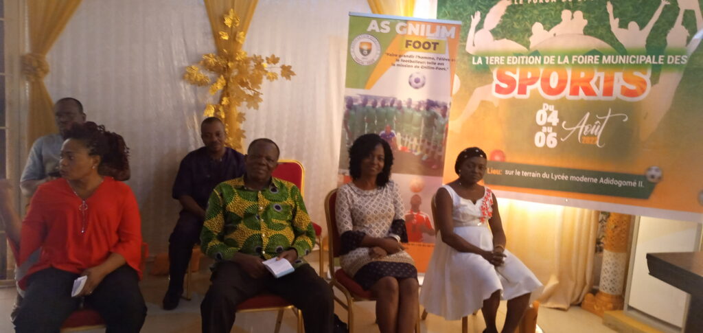 L’annonce de cet évènement inédit a été dévoilée vendredi 29 juillet 2022 au cours d’une conférence de presse dans les locaux de la Commune en présence du représentant du Maire Monsieur ADIGBLI. L’on peut également remarquer, les présidents et présidentes des ONG partenaires de cette foire et sans oublier le Coordonnateur du FSA Jean Mari ATTILA. Pour ce dernier, la commune du Golfe 7 à une population jeune et en collaboration avec la mairie du Golfe 7, nous avons voulu innover en organisant « La Foire municipale des Sports ». Ceci nous permettra de relever les défis liés aux manques des infrastructures pour le développement des activités sportives dans la commune.