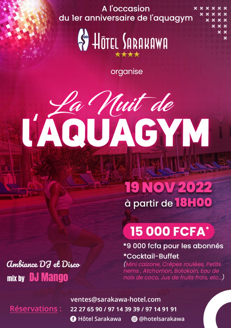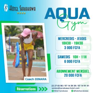 Ticket : 15 000 FCFA TTC ; Déjà abonné à l’Aquagym : 9 000 FCFA