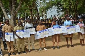 Ces prix étaient composés dans l’ensemble de dix (10) ordinateurs portatifs attribués à tous les premiers du BAC2, des bourses de 35 000F pour les élèves méritant du BAC1. Ceux du BEPC ont reçus les bourses de 30 000F et les meilleurs du CEPD ont bénéficiés quant à eux ont eu une bourse de 25 000F.