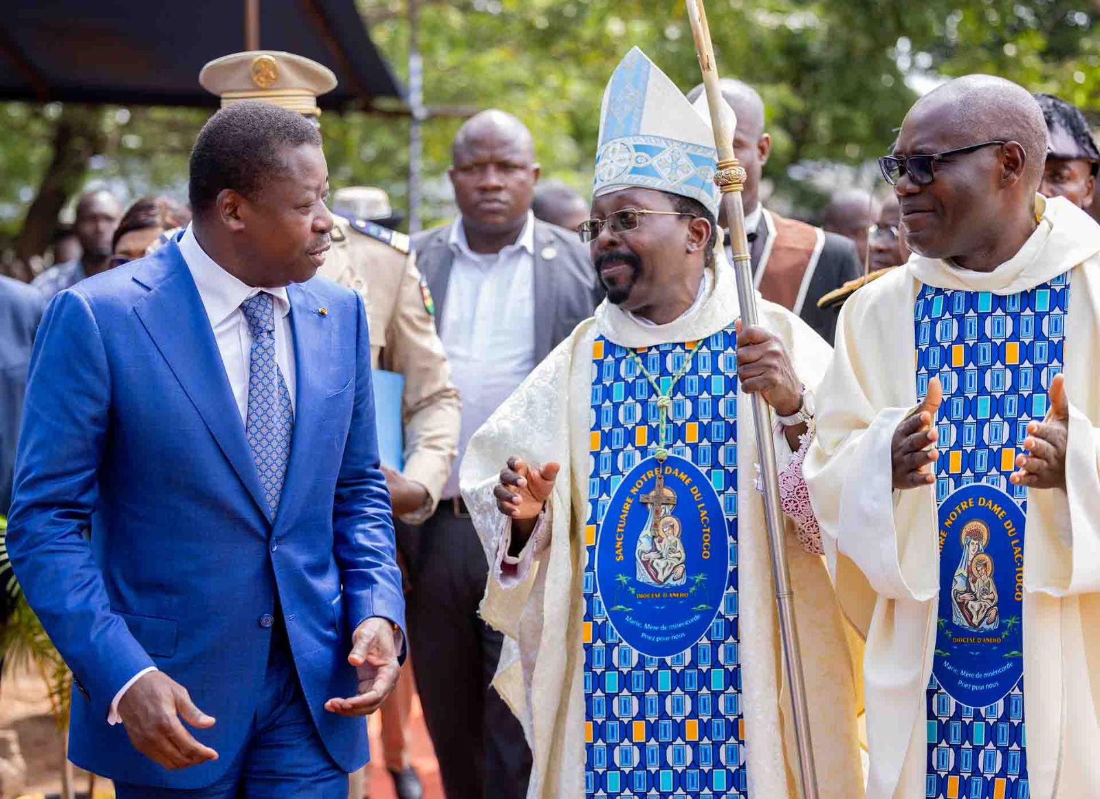 « Monsieur le Président de la République, votre présence honore non seulement l’Eglise catholique mais également toute la nation togolaise car c’est cette localité qui a donné son nom à notre pays. Nous prions pour vous, pour vos collaborateurs et pour la paix au Togo » a déclaré l’Evêque d’Aného.